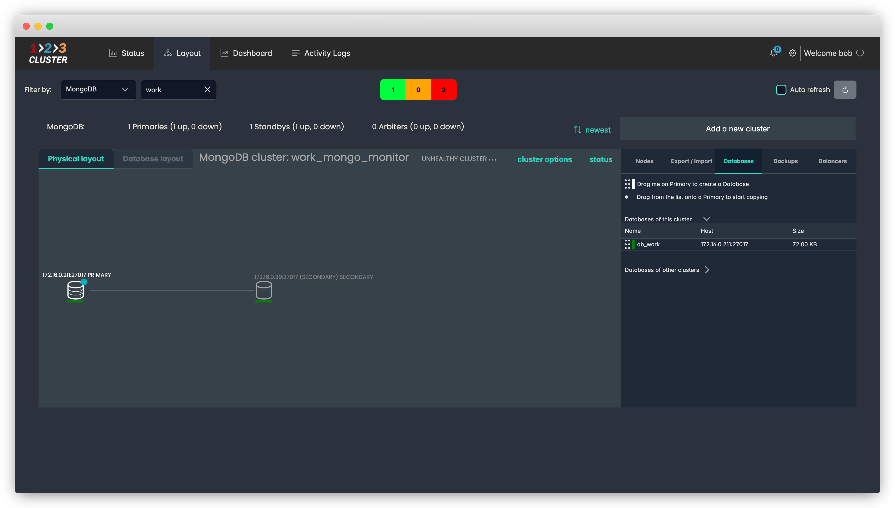 Drag the dotted icon located near 'db_work' database onto the Primary node.