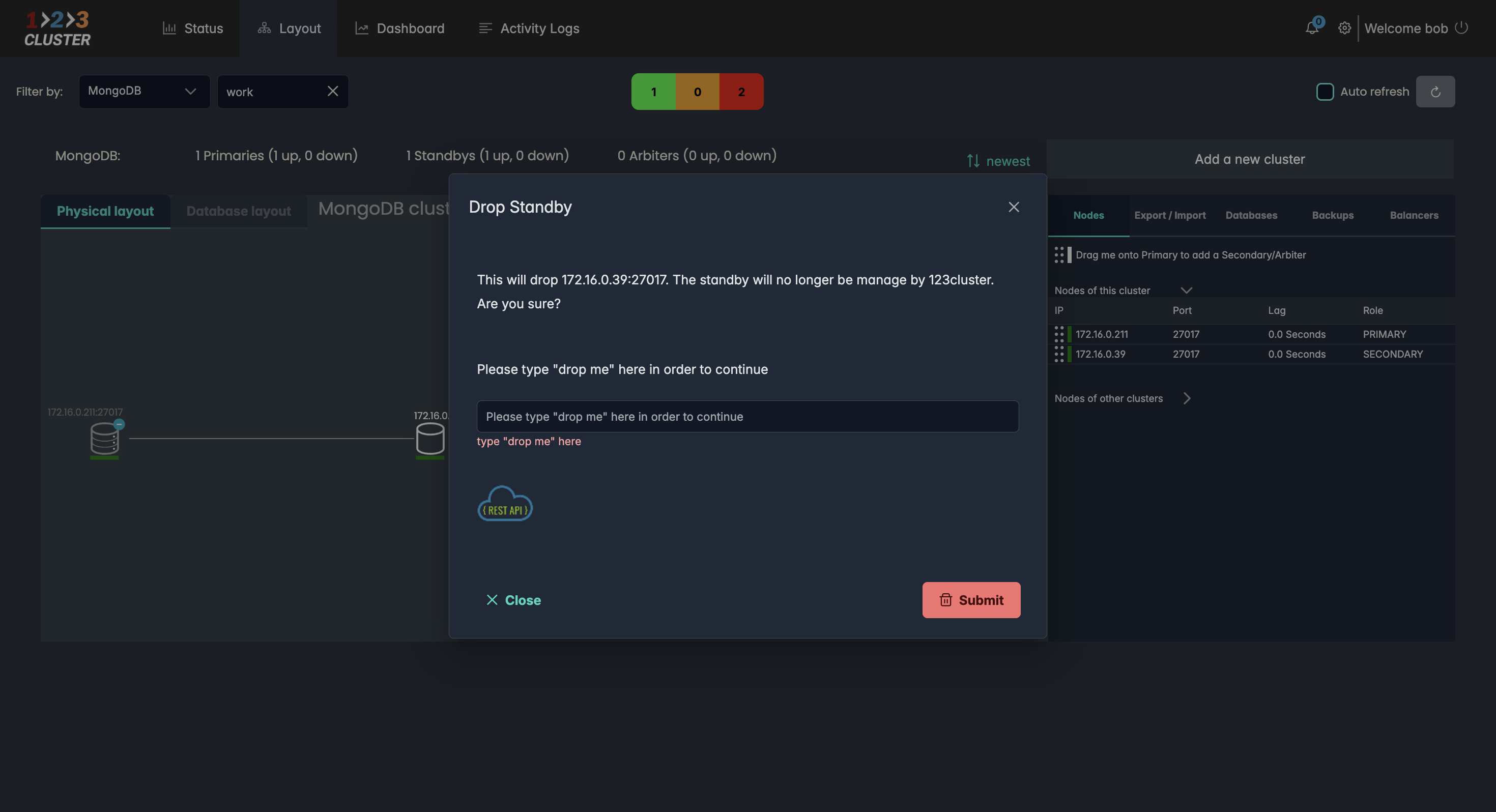 Drag the Secondary node icon into the Trash icon allocated right below the Primary node.