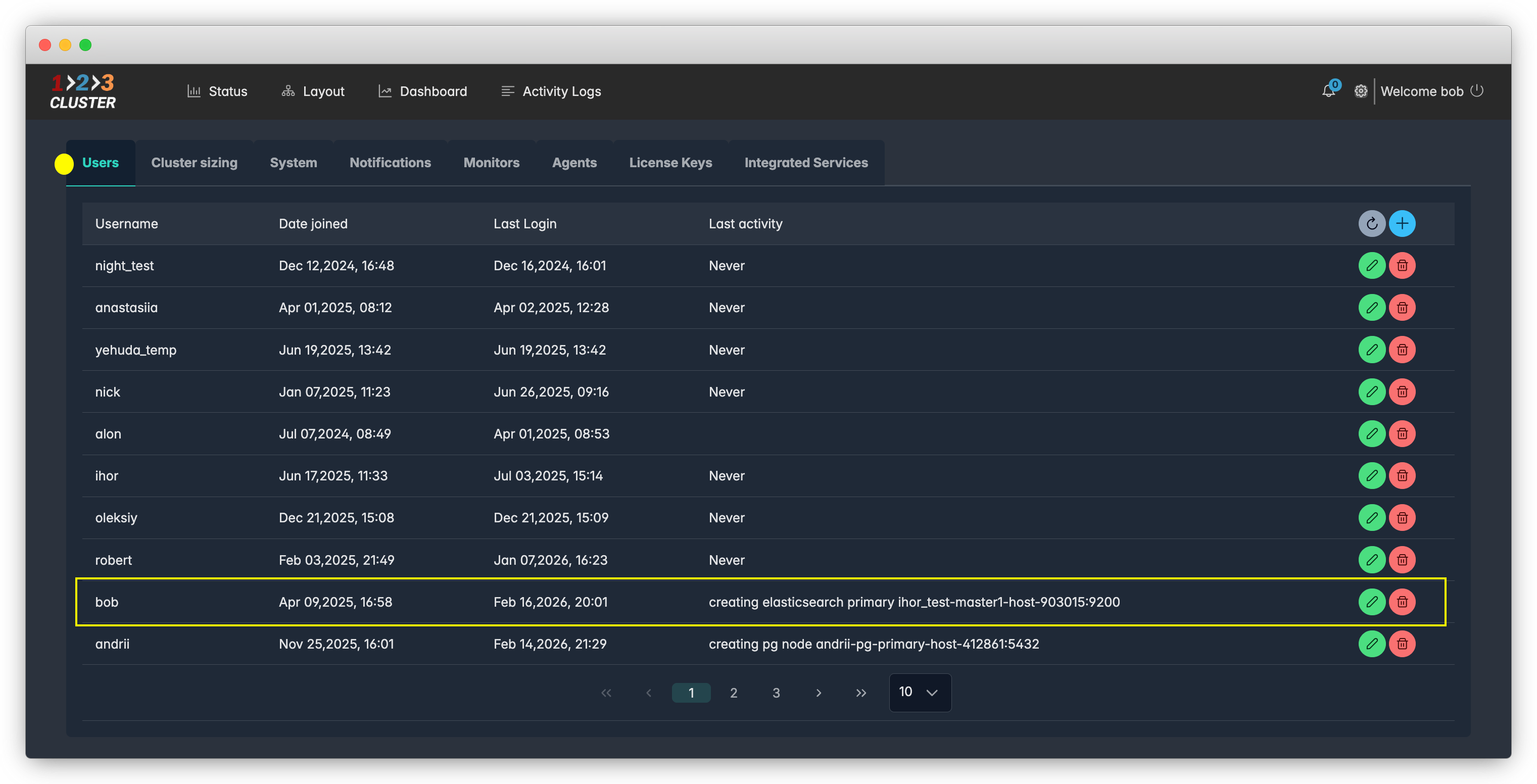 The Users tab opens automatically.